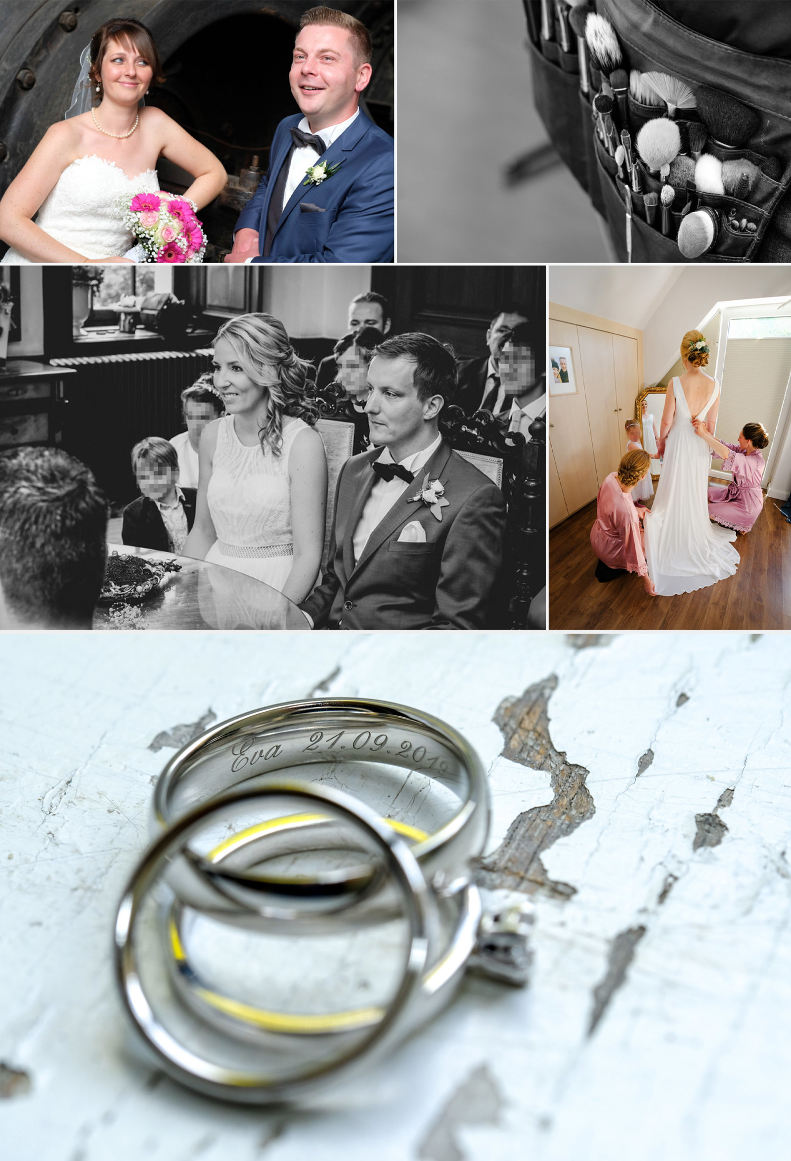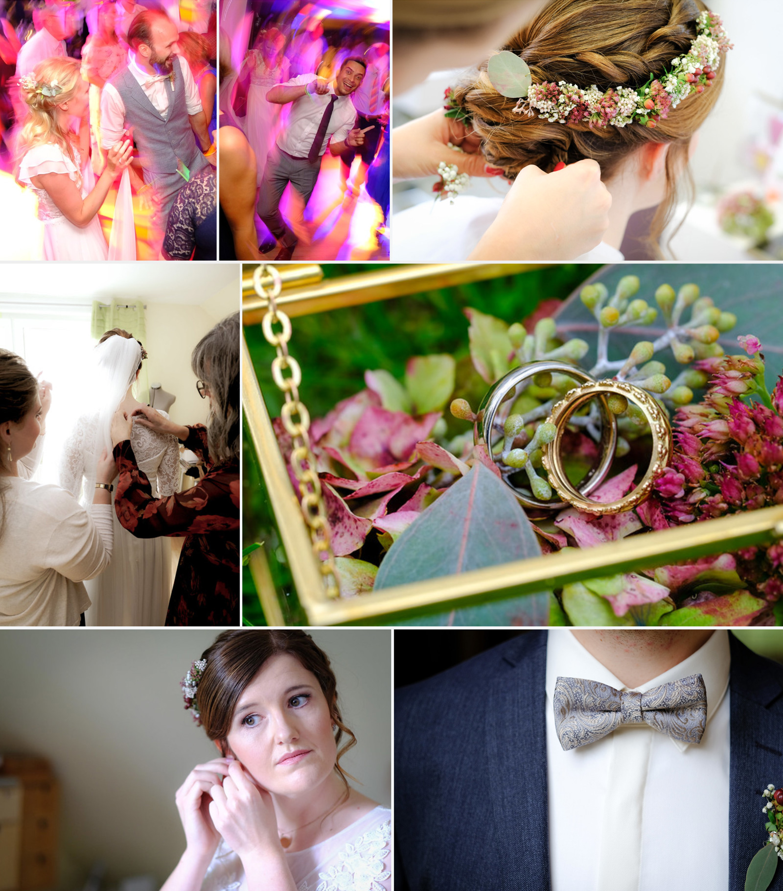 Hier eine bunte Mischung – vom Getting Ready, über die Trauung, das Shooting, bis hin zur Feier am Abend.